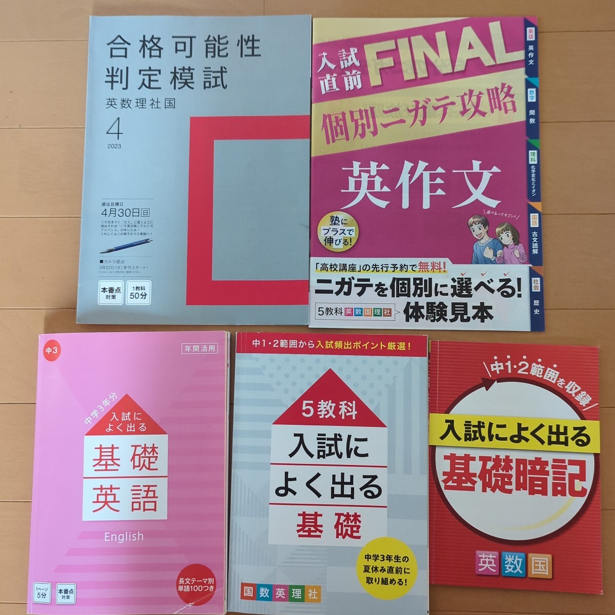 > 中古☆進研ゼミ中学講座5冊☆3年生☆charenge☆暗記ブック・演習問題☆英語・数学・国語・理科・社会☆送料込み