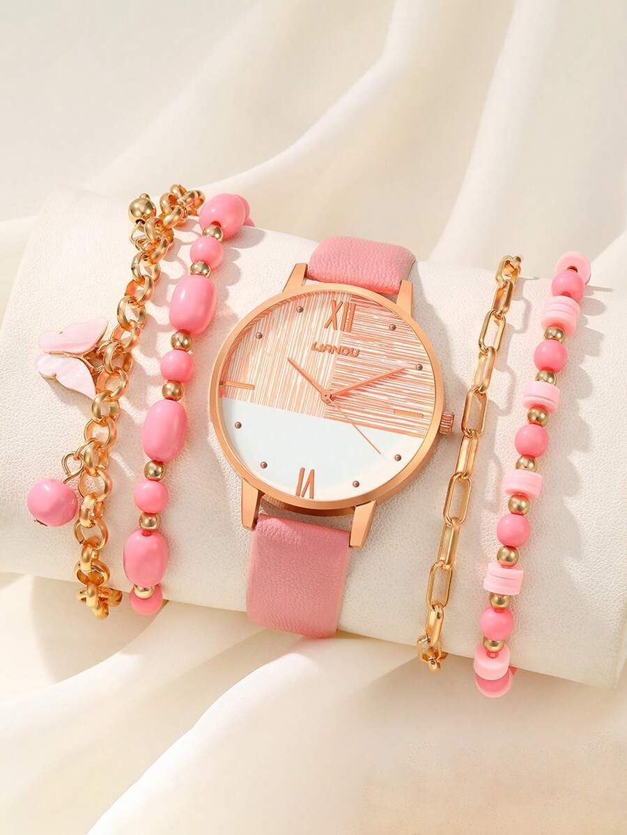 - 腕時計 レディース セット バタフライブレスレット4個セット+腕時計 女性向け パーソナライズ レザー