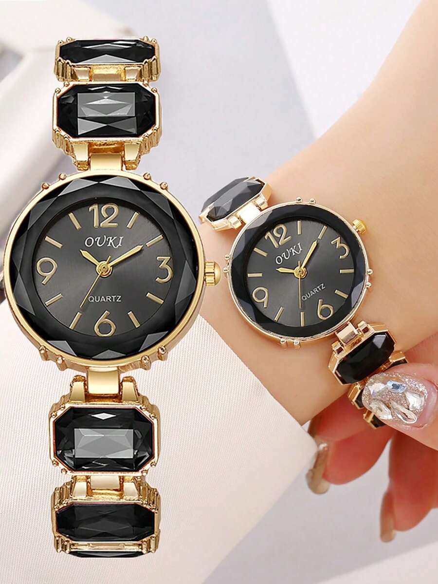 - 腕時計 レディース クォーツ 1個 新作カジュアルファッション レディース腕時計、ユニークなデザインの文字盤にクリスタル装飾、ライ