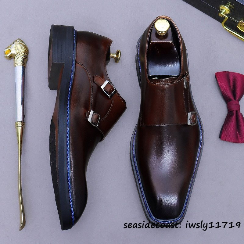 - 定価10万◆最高級 ダブルモンクストラップ 本革 レザーシューズ ビジネスシューズ 職人手作り 紳士靴 革靴 冠婚葬祭 新品 ブラウン 27.5cm