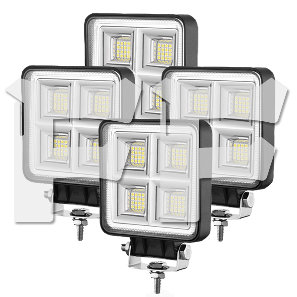 > 送料無料.. LEDワークライト 作業灯 128W 4インチ 照射角度145° ホワイト 6500K 投光器 補助灯 前照灯 照明 新品 4G-128W 12V/24V 4個