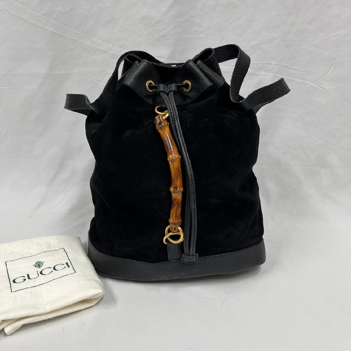 - ▽▼グッチ GUCCI オールドグッチ バンブー BAMBOO バックパック リュック スエード×レザー ブラック系色 ヴィンテージ レディース▼▽
