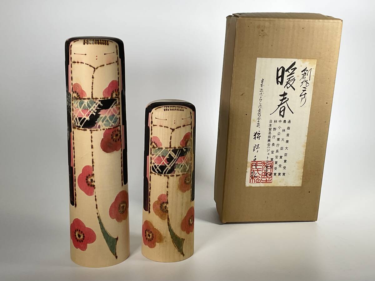 - 創作こけし 狩野千代松 「暖春」 大小2点 箱付き 内閣総理大臣賞受賞作家 近代こけし