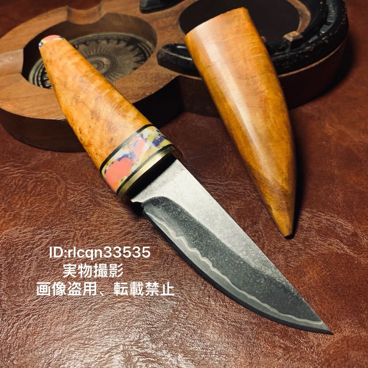 - 超高品質 高級木製 和風木鞘ナイフ 鋼刃 和式小刀 伝統工芸 日本刀型 キャンプ アウトドア 釣り 野外登山 16.5cm