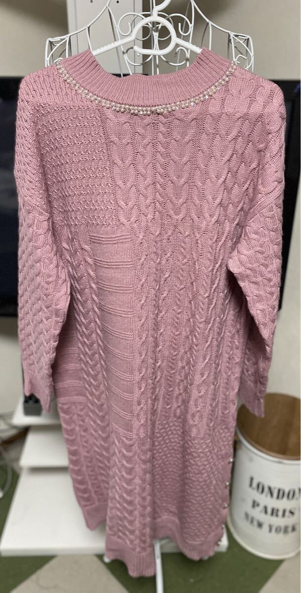 > 美品axes femme 編み柄切替ニットワンピース 淡いピンク