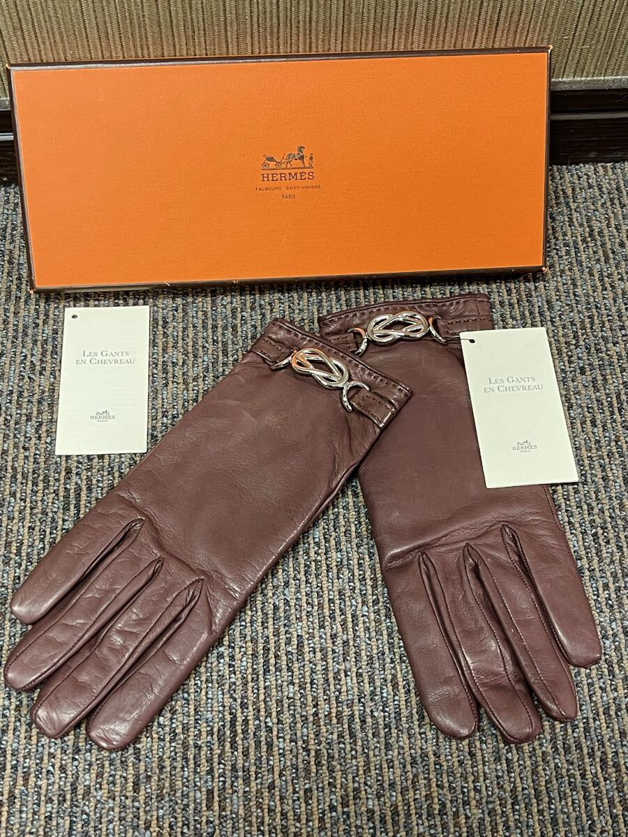- 1000円~新品商品! エルメス HERMES ラムスキン レザーグローブ 手袋 ブラウン 箱 紙冊子あり O-16