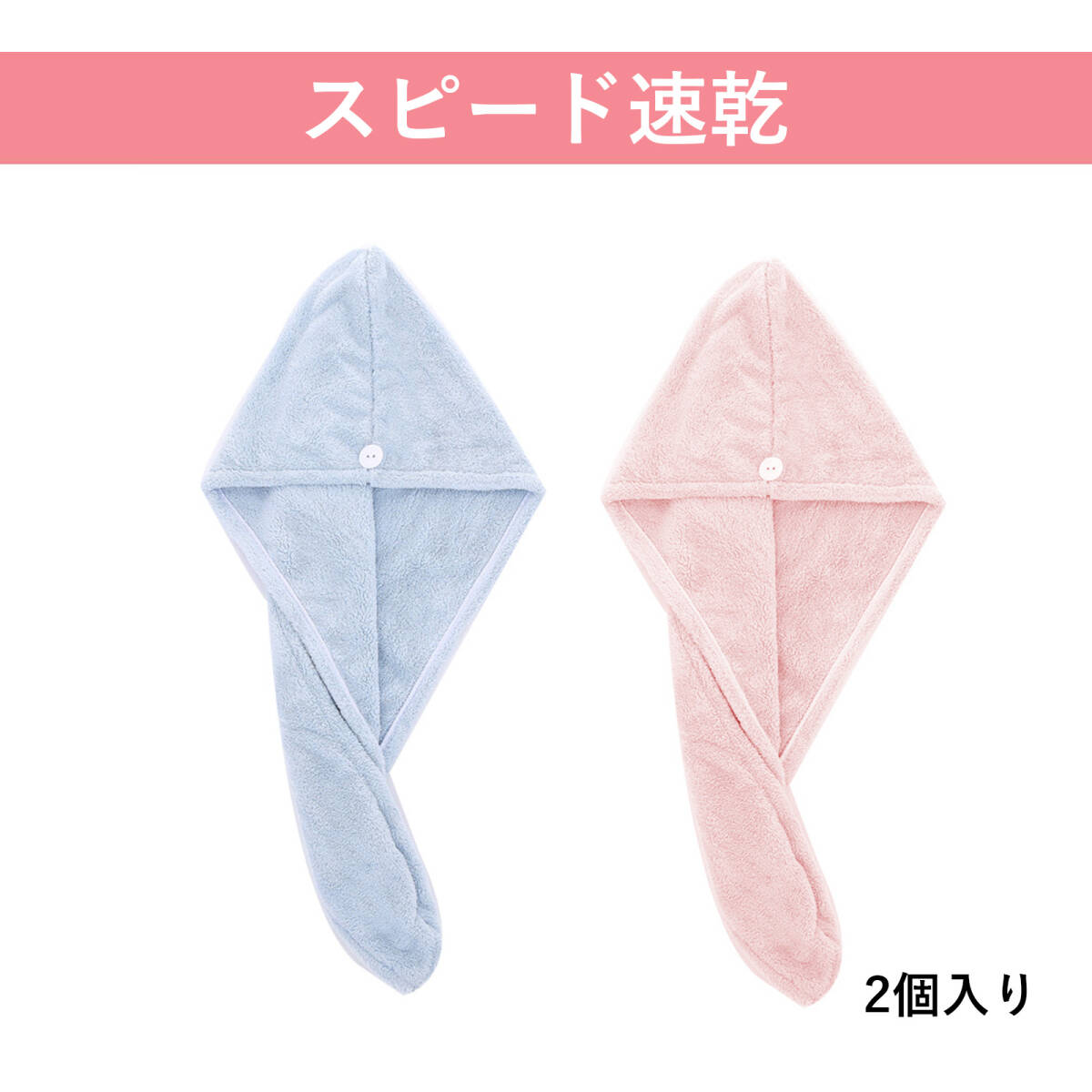 - 【2個入り】タオルキャップ 大人 髪の毛 タオル 速乾 ヘアタオル ドライキャップ ヘアドライタオル レディース 二重構造 ;J3382;