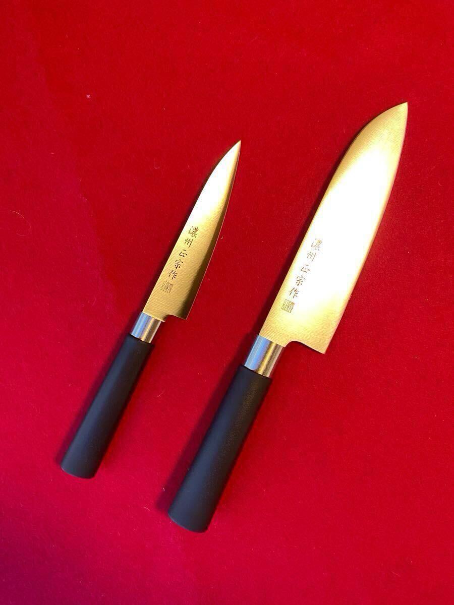 - ☆関の包丁2本セット・三徳+ペティナイフ・濃州正宗作・柄部:PP(濃茶)
