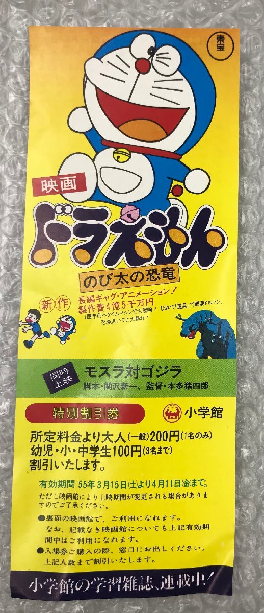 ※現状品 当時物 ドラえもん のび太の恐竜 割引券 割引 チケット SF57※発送の際は片面を台紙にて補強した状態で発送致します。※長期保管品につき記載のない他経年ダメージ、不備が有る可能性がございます、予めご了承下さいませ。※現状品であること、上記を全てご理解いただける方のみご入札お願い致します。