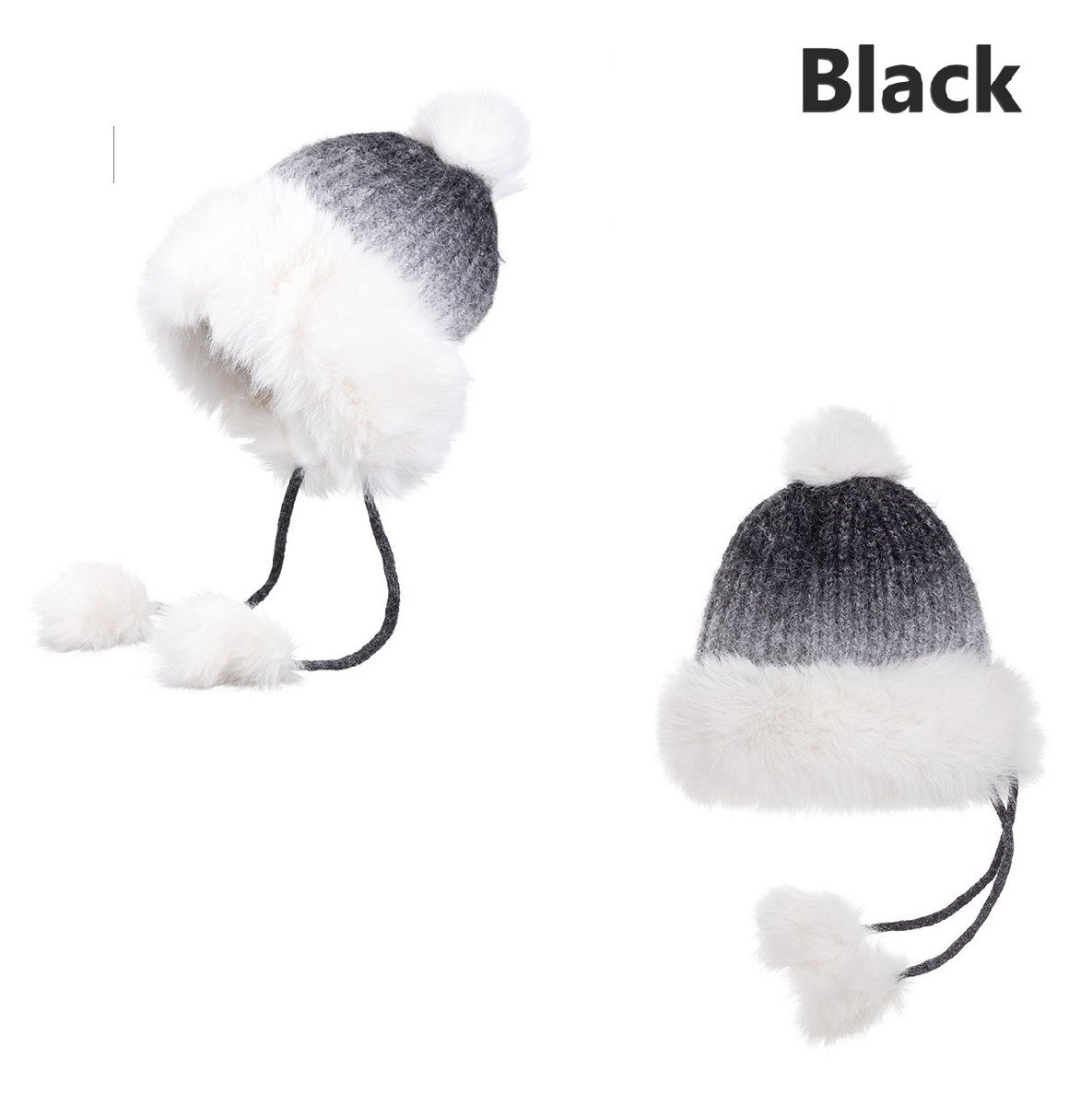- ニット帽 ブラック レディース 秋冬 厚手 帽子 ニット 柔らか キャップ hat アウトドア ポンポン付き あったかい オシャレ 冬 耳当て n842
