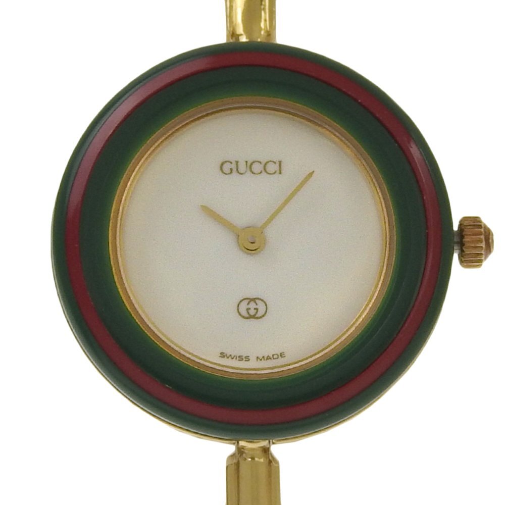 - ■ 1円 ~ 中古品 ■ グッチ GUCCI ■ チェンジベゼル 1100L レディース 腕時計 ■ ゴールド 金 ビンテージ クォーツ バングル ウォッチ