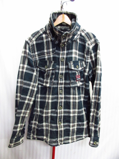 > SUPERDRY 極度乾燥しなさい ハードネルシャツジャケット メンズXL LL 黒チェック柄 フランネルシャツ ワークジャケット ブルゾン11061