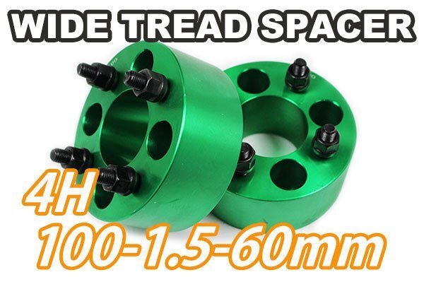 - MR2 AW10 AW11 ワイトレ 4H 2枚組 PCD100-1.5 60mm ワイドトレッドスペーサー (緑)
