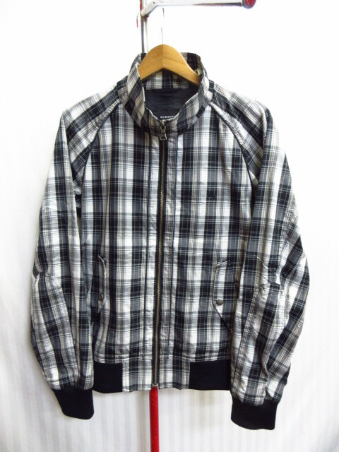 > バーバリーブラックレーベル ロゴ刺繍コットンジャンパー メンズL 黒チェック柄ブルゾン ハリントンジャケット スウィングトップ11061