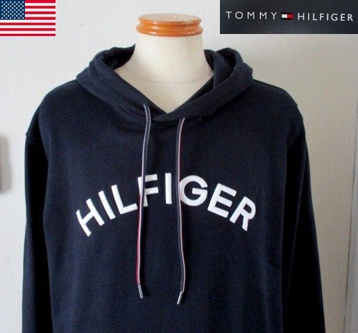 - ★ 新品 メンズ トミーヒルフィガー TOMMY HILFIGER コットンフロントロゴ 長袖 パーカー US XL 日本XXLサイズ ネイビー