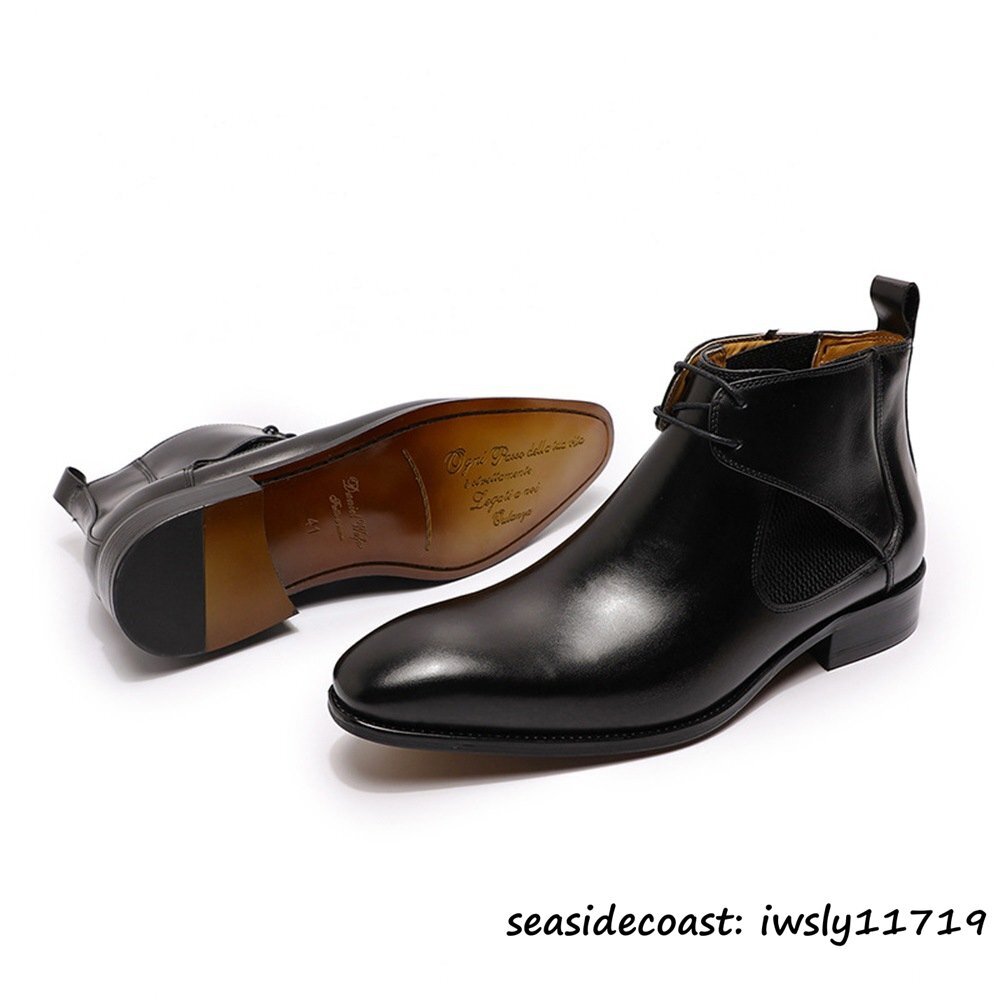 - 最高級★定価13万 マーティンブーツ 超希少 職人手作り 本革 レザーブーツ エンジニアブーツ ショートブーツ 牛革 紳士靴 ブラック 27.0cm