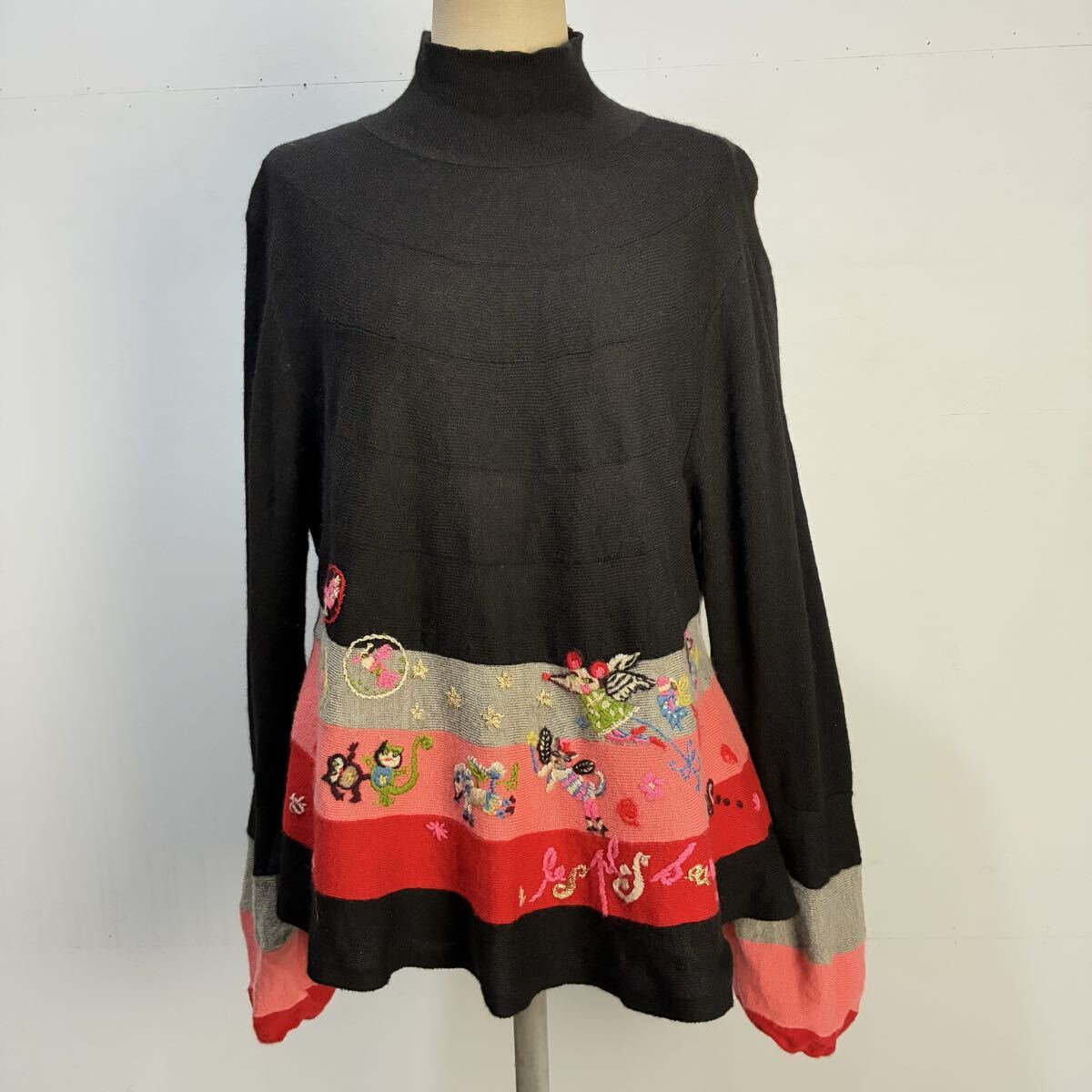 > TOKUKO 1er VOL ニットセーター 刺繍ニット ウールシルク 極上素材 モックネック 希少 トクコプルミエヴォル【レターパックプラス郵送可】T