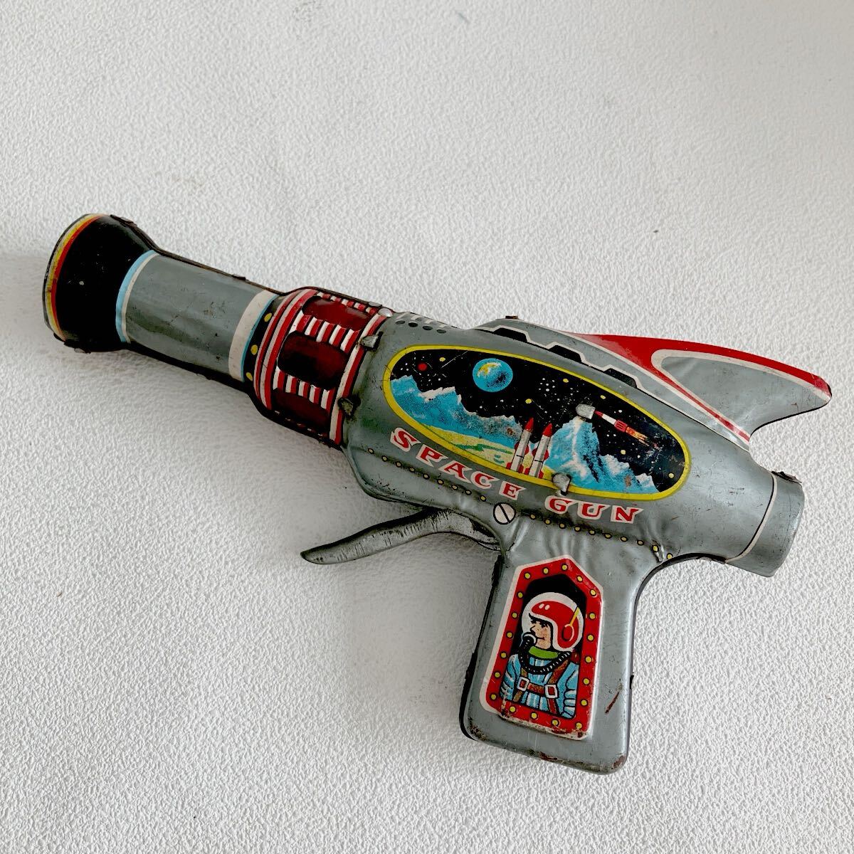 - e309-60 昭和レトロ ブリキ 玩具 スペースガン ピストル おもちゃ ビンテージ 当時物