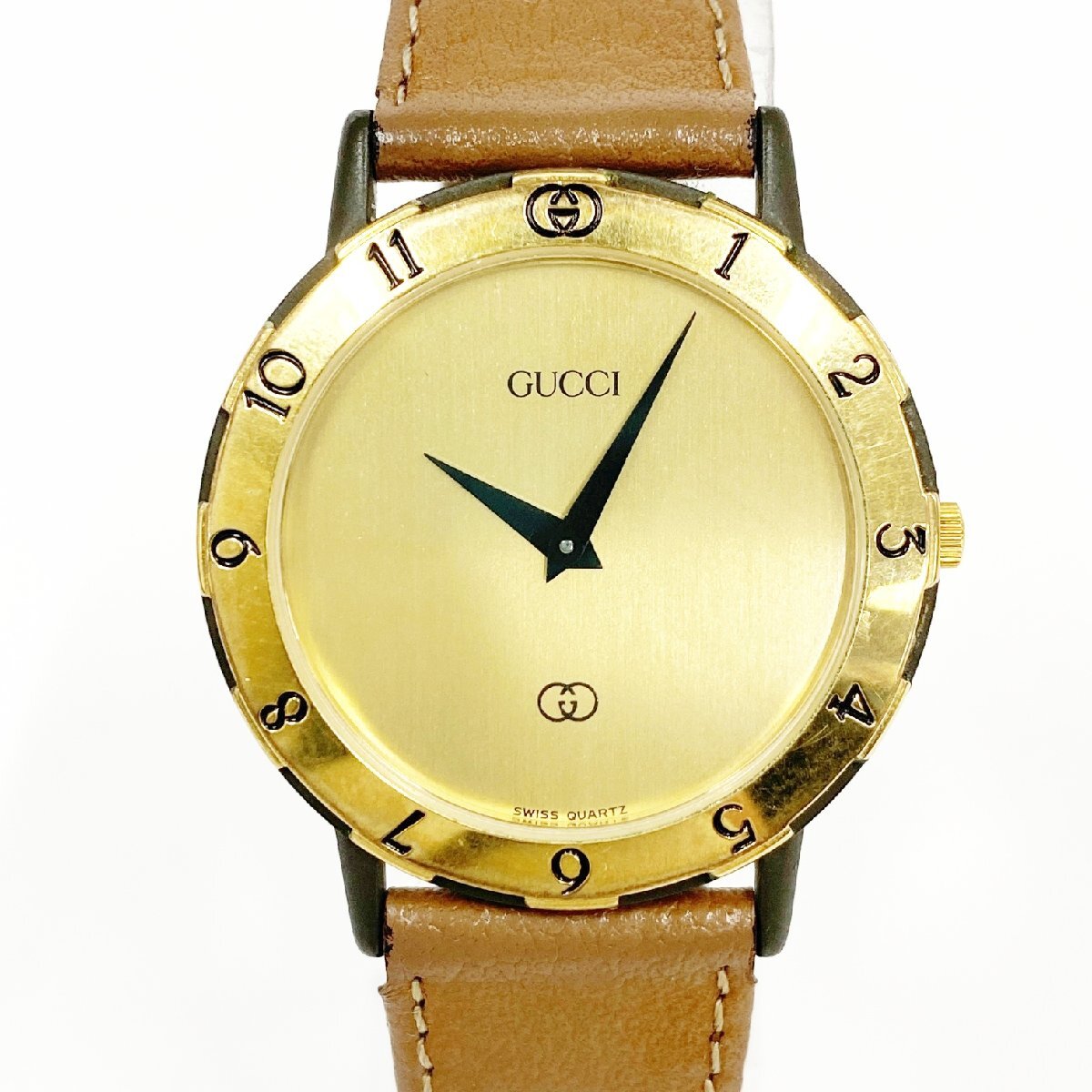 > 【1円スタート】GUCCI グッチ 3200 GP ゴールド文字盤 クオーツ メンズ腕時計 ジャンク 510704