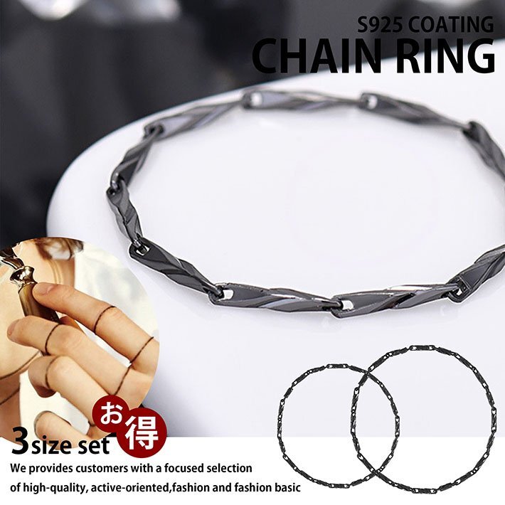 - 指輪 メンズ レディース チェーンリング アクセサリー ファランジリング ピンキー 7987299 3サイズセット ブラック 新品