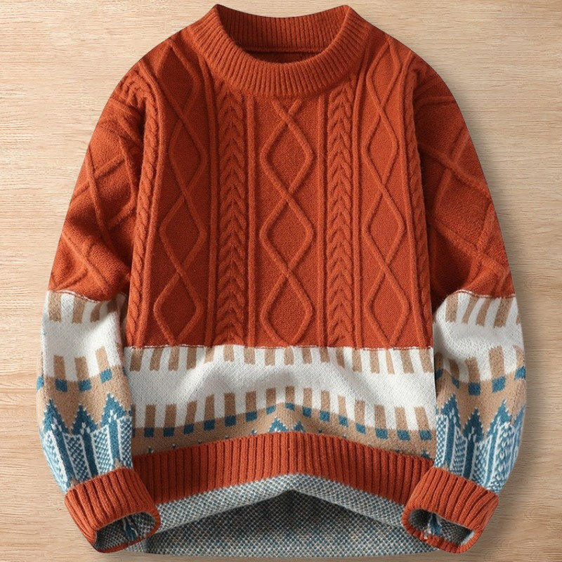 - Y114-L オレンジ 新品DCKMANY ウール混 アラン編み フィッシャーマンニット セーター 厚手 暖かい 冬用 長袖 メンズプルオーバー トップス