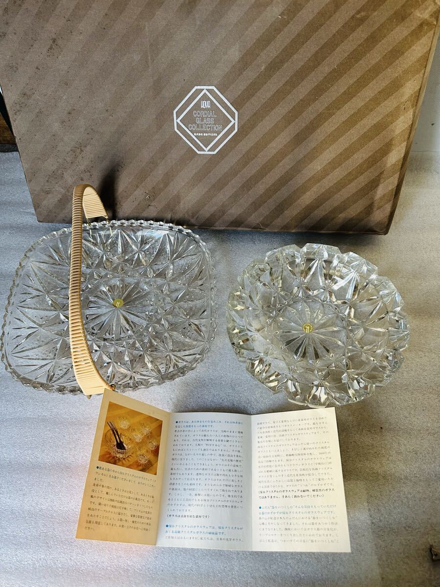 - 昭和レトロ HOYA GS220 クリスタルガラス いこいセット つる付角大皿/灰皿【未使用保管品】