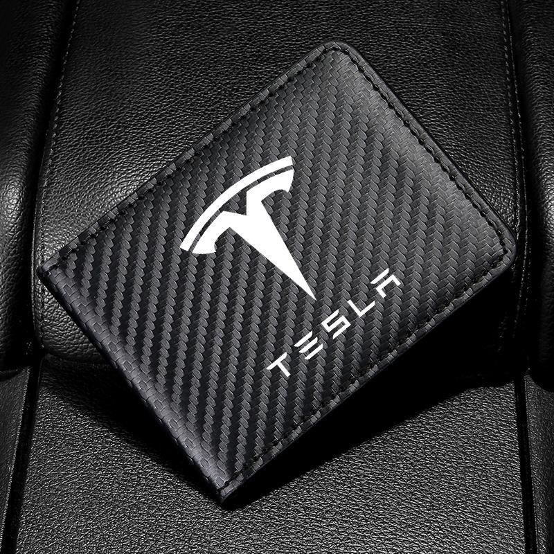 > テスラ カードケース 免許証ケース カードホルダー PUレザー カーボン調 名刺ファイル カード入れ クレジットカードケース 小銭入れ