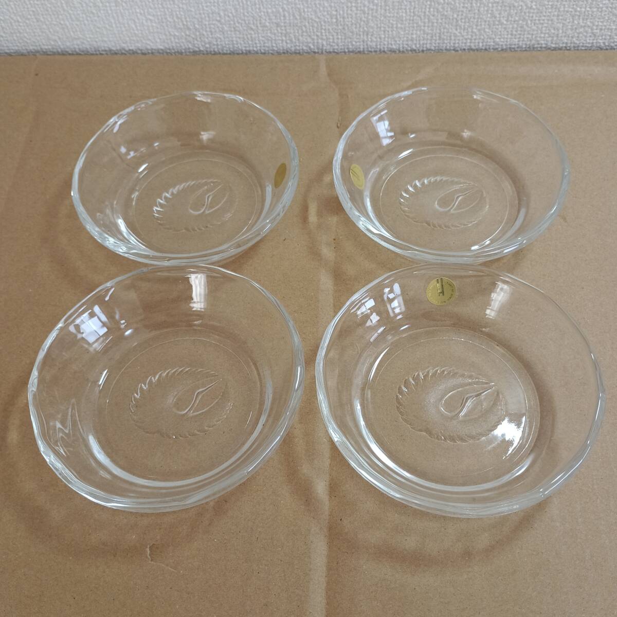 - 【レトロ 白鶴】 ニューラベル記念 保谷クリスタル小皿 HOYA 4個セット Made in Japan 新品未使用