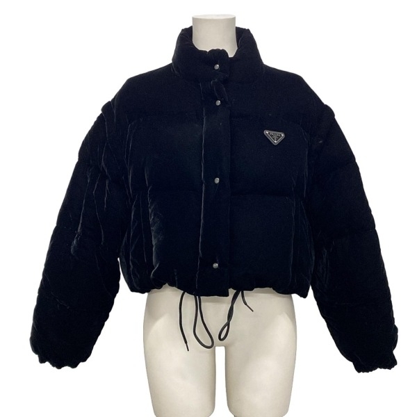 > プラダ PRADA ダウンジャケット サイズ44 L 291805 ベルベット ダウンジャケット ダウン 黒 レディース 長袖/袖取り外し可/冬 美品