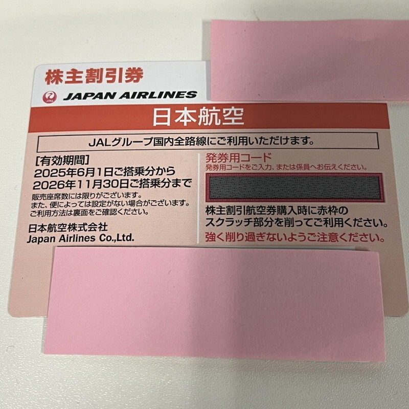 > ICH【未使用品】JAL 日本航空 株主優待券 2026年11月30日まで 1枚〈212-251103-SS-06-ICH〉