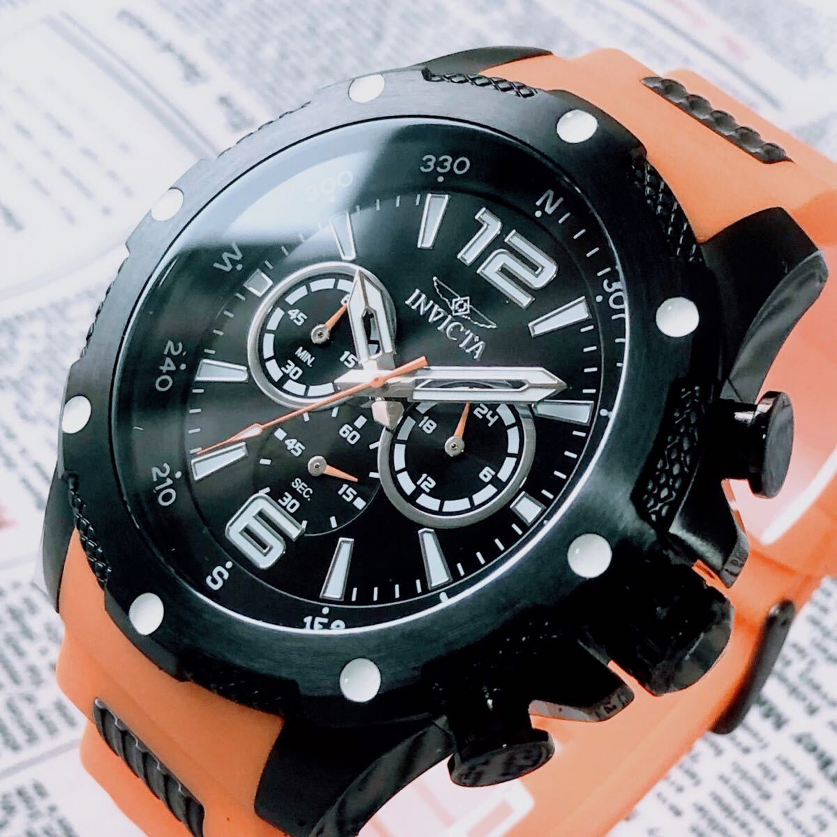 > #3794【1円スタート】メンズ 腕時計 インビクタ Invicta クォーツ Quartz 動作良好 ブラックダイヤル インヴィクタ クロノグラフ 黒文字盤
