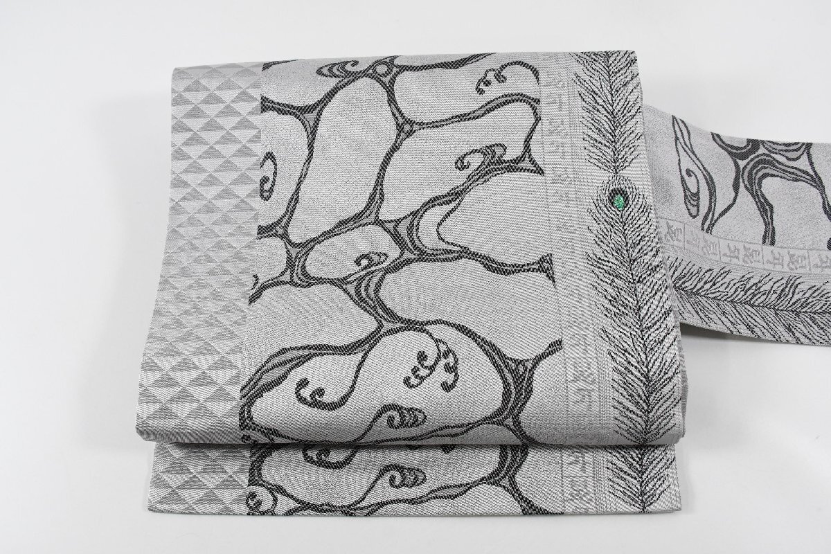- 名古屋帯 流水文 孔雀の羽 字模様 帯丈364cm ★着物屋 ne-16527 桜庭呉服店