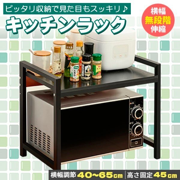 > レンジ上ラック キッチンカウンター上収納 スパイスラック トースターラック 横幅 調整 伸縮式ラック 伸縮キッチンラック 冷蔵庫 黒