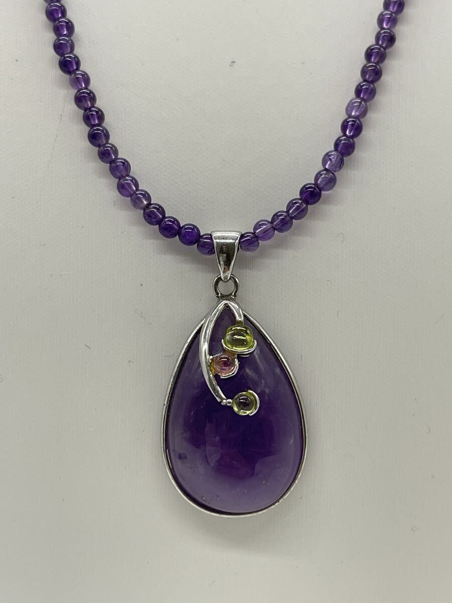 - 美品 ネックレス シルバー925 ペンダント 天然石 パワーストーン 紫 1円スタート