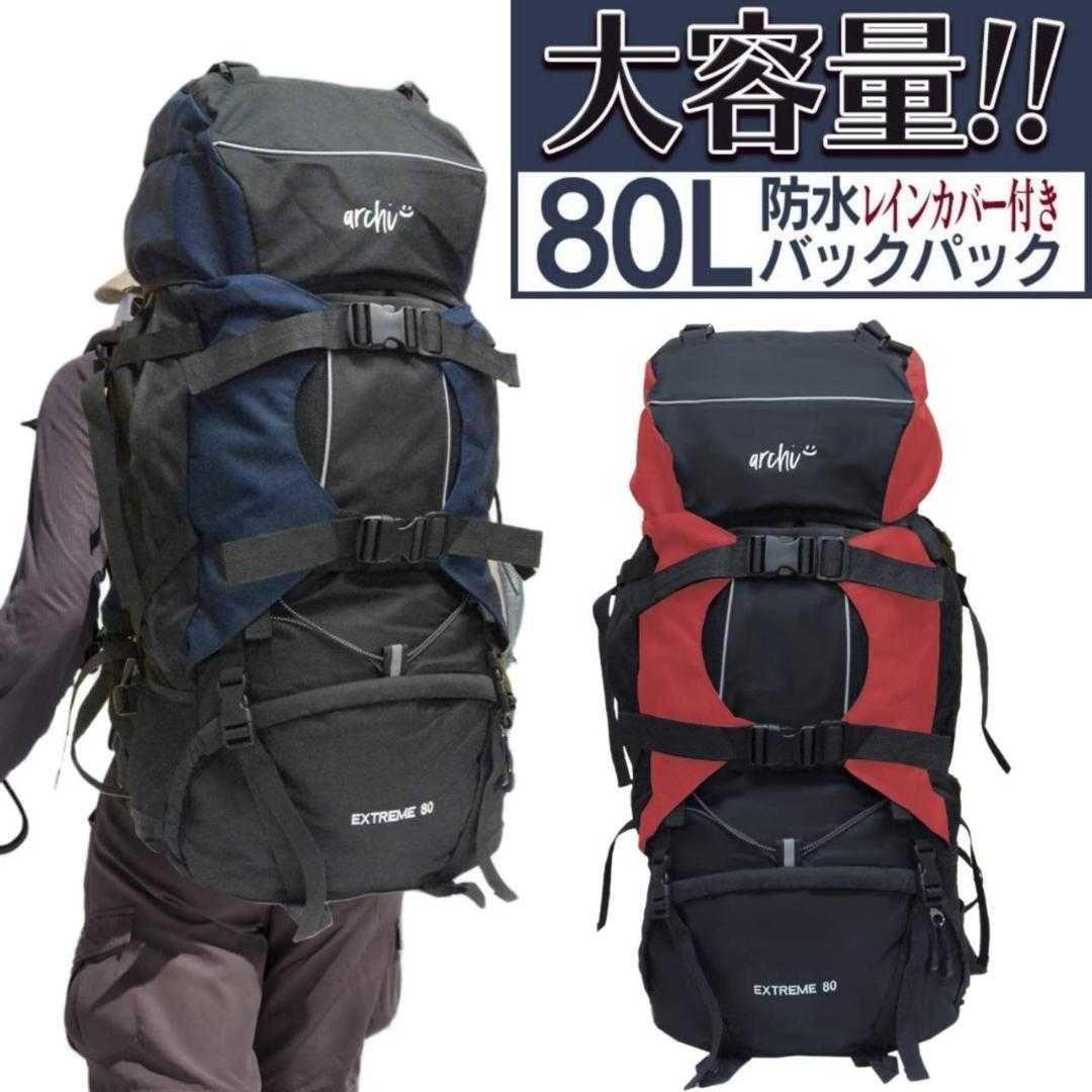 > 大容量 80L バックパック レッド レインカバー付き キャンプ 登山 赤 非常用 キャンプ 登山 アウトドア ソロキャンプ ツーリング