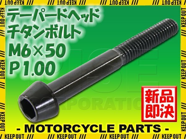> メール便OK!M6×50 P1.00 チタンボルト 1本 6mm 50mm ピッチ1.00 ブラック テーパーボルト キャップボルト クランクケース バイク