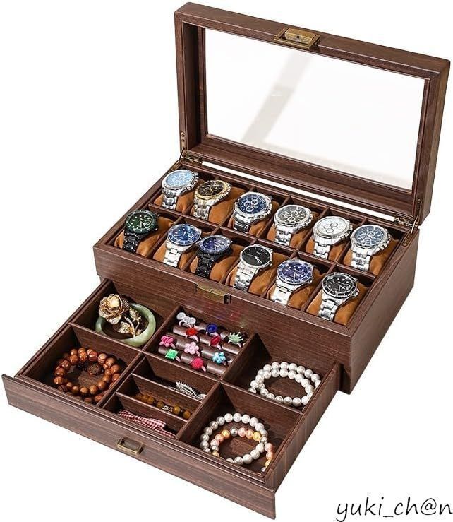 - 腕時計ケース 木製 天板ガラス 木製 腕時計 コレクションケース ボックス ショーケース 高級 時計 アクセサリー 小物入れ
