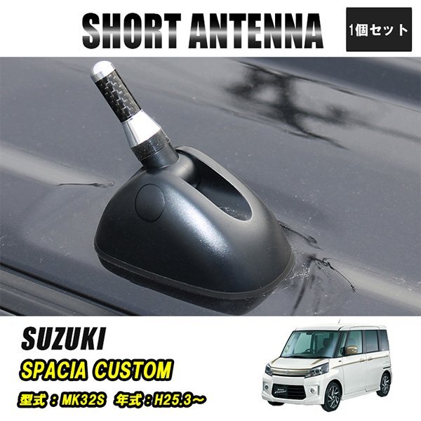 - スペーシアカスタム MK32S ショートアンテナ 車 ラジオ カーナビ ステレオ 好感度 ユーロ 3.5cm 銀 カーボン調