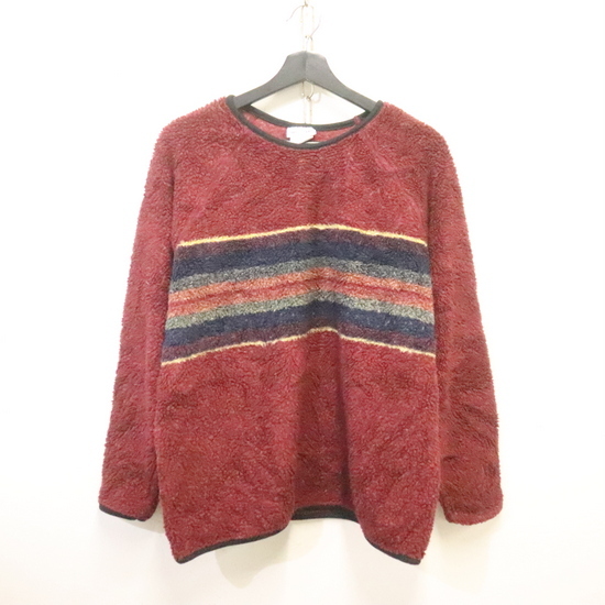 - j226 90sビンテージ TAPEMESURE ボーダー 長袖 フリーストップス USA製■1990年代製 表記Lサイズ ボルドー アメカジ ストリート 古着卸 80s