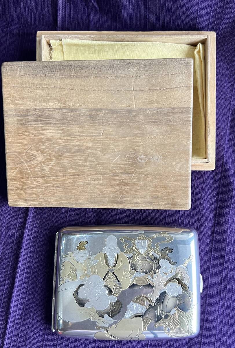 - 純銀STERLING 92g シガレットケース 七福神 極美品 アンティーク 喫煙グッズ 工芸品
