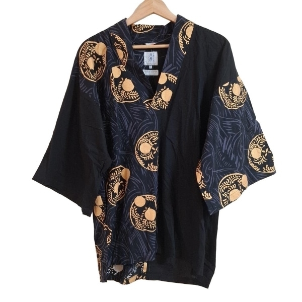 > ソウソウ SOU・SOU チュニック サイズM - 黒×ベージュ×ダークグレー レディース Vネック/七分袖/風靡/GIBAO/知多木綿 ワンピース