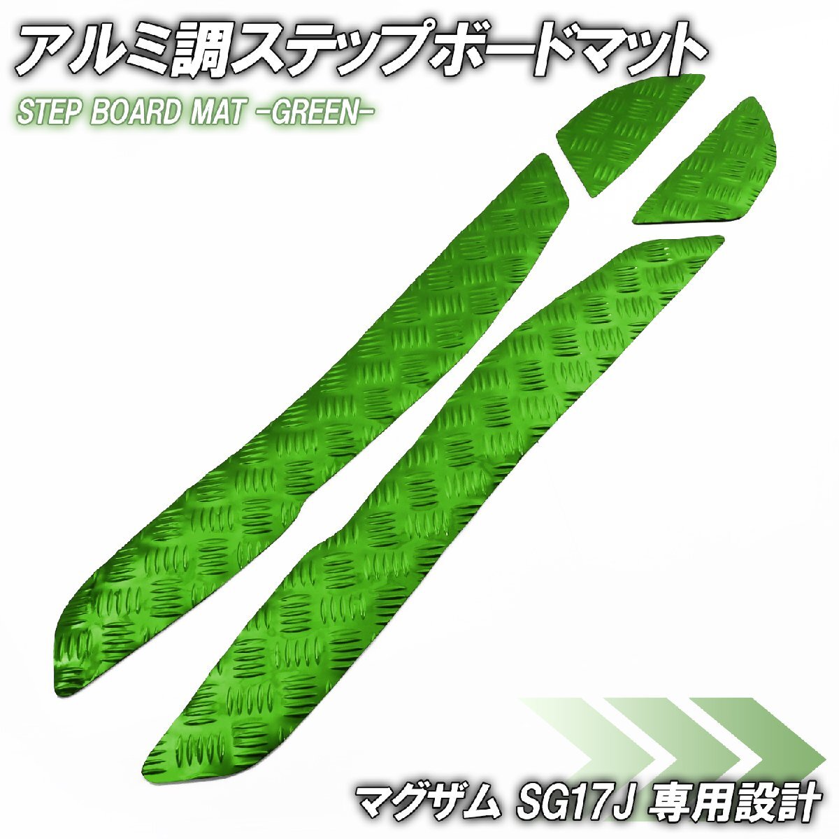> アルミ調 ステップマット ヤマハ マグザム SG17J グリーン メッキ バイク ゴムマット ステップボード カスタム 交換 パーツ 部品