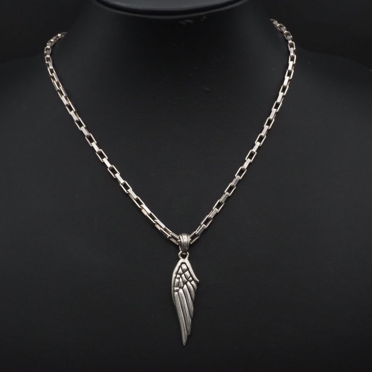 - H684 ヴィンテージ 925刻印 ペンダント ネックレス 羽 フェザー デザイン シルバー