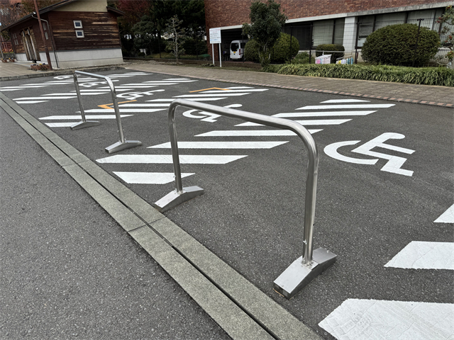 - 商品説明動画付 パイプ ステンレスフェンス ガード 車止 横置き 丸型 幅 1.8M 1800mm 高0.9M 900mm 駐車場 コンビニ 公園 イベント会場