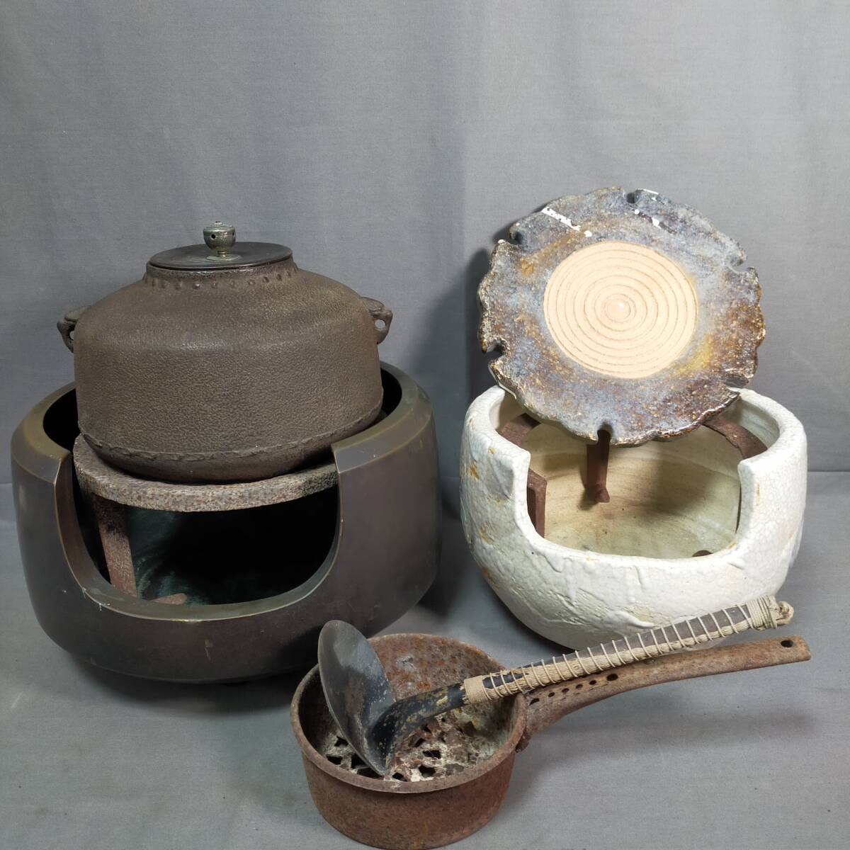 - △ 8/5 291259 【引取限定:兵庫県西宮市】 茶道具一式 おまとめ セット 茶釜 風炉釜 鉄釜 茶道具 コレクション 現状品