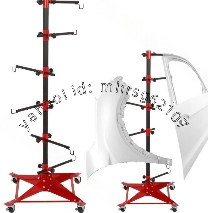 - 調整可能なセンターポスト付きオートパネルツリーペイントスタンドホルダー、6つの調整可能なフック/4つのホイール付きの頑丈な車
