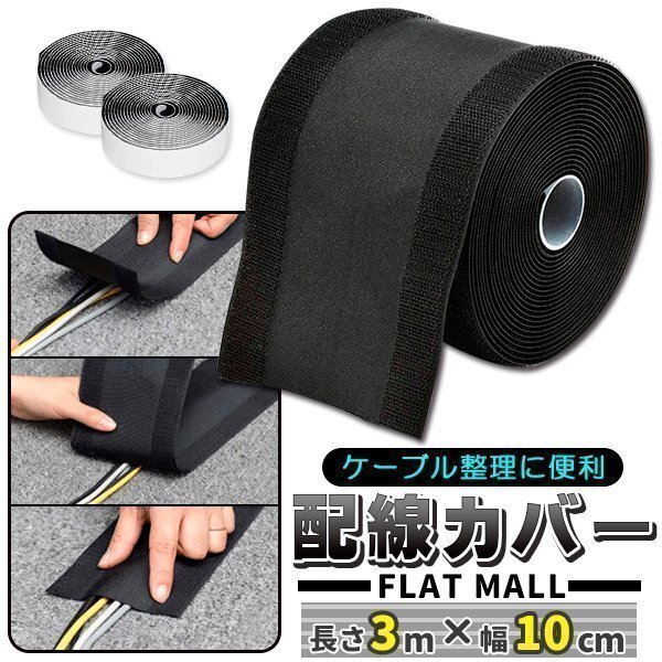 - フラットモール 長さ3m 幅10cm 配線カバー ケーブルカバー コードカバー 床 デスク 配線隠し フローリング カーペット オフィス