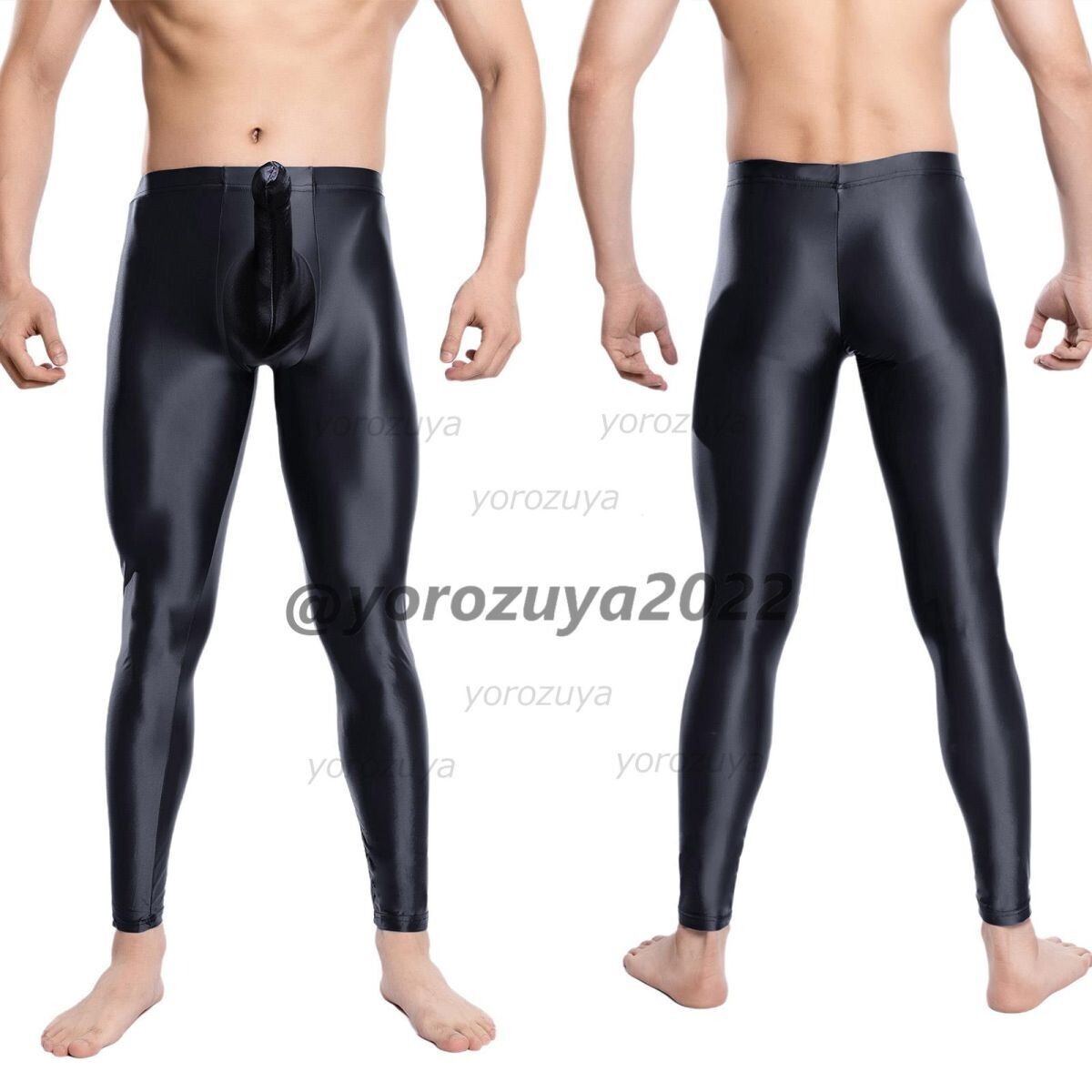 - 181-280-25 ツヤツヤ 光沢 サオ付き アンクル レギンス【ブラックLサイズ】男性 メンズ 勃起パンツ ランジェリー ブリーフ ショーツ.1