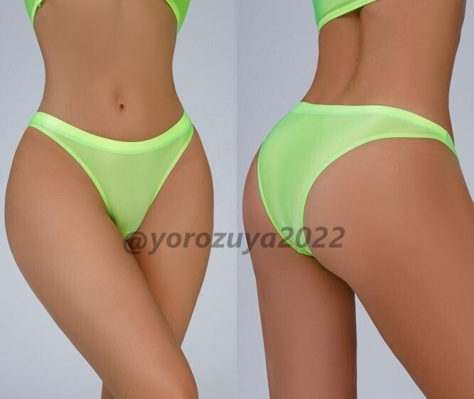 - 175-298-8 光沢 ツヤツヤ ビキニ ショーツ ハーフバック【グリーンL】レディース 下着 パンツ セクシー ブラジリアン ランジェリー.4
