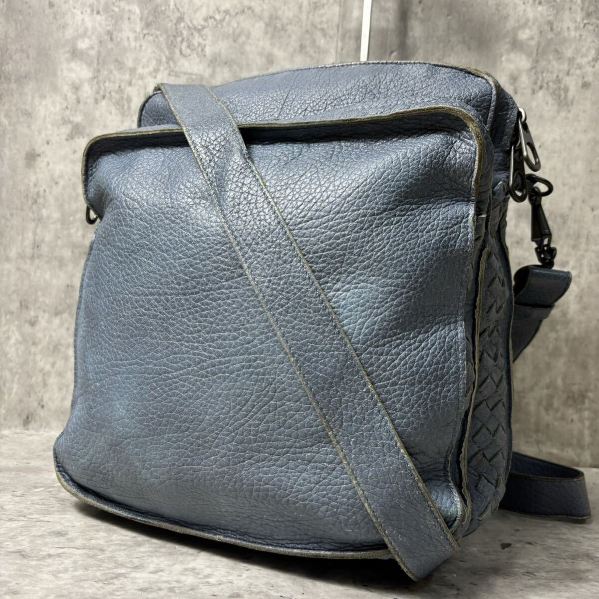 > 美品/希少カラー●BOTTEGA VENETA ボッテガヴェネタ イントレチャート ショルダーバッグ 斜め掛け レザー 本革 ビジネス ブルー 青 メンズ